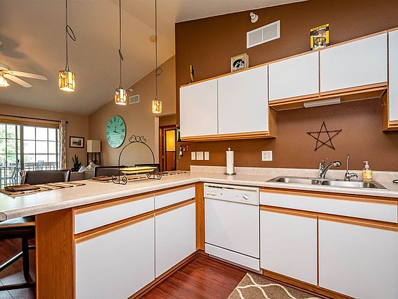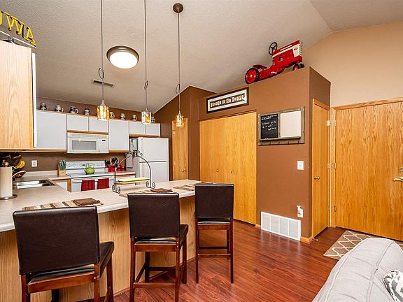 Very nice unit Top floor with vaulted ceilings. Fireplace, Deck, Cherry Finish Laminate Floors, One car detached garage. Washer/dryer stay. Well run association. Located in convenient Coralville location