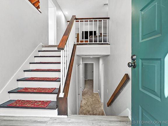 Welcome to this charming corner unit condo in Jenks School District! This updated split level gem offers 2 bedrooms, 2 bathrooms, and an expansive family room with a fireplace and bonus space. The kitchen is fully updated, while both bathrooms feature new granite, and the primary bath has new cabinetry. Enjoy tranquil views of the lush greenspace and pool, all illuminated by plenty of natural light. Move-in ready and waiting for you! Agent related to seller.