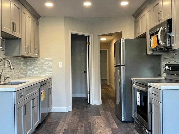 Completely updated Very close to downtown Pleasanton shops / restaurants and fantastic Pleasanton schools. Both full bathrooms and entire kitchen have been COMPLETELY UPDATED. - Kitchen has all new stainless steel appliances, fixtures and hardware. - New flooring and fresh paint throughout the entire home. - Bathrooms have all new fixtures and hardware. - Bedrooms are LARGE and have ample closet space. - Two car garage with WORKBENCH, CABINETS, STORAGE. - Large living room with fireplace. - Dining area surrounded by windows into back yard. - Very large deck in back yard for BBQ's and entertaining. - Central heat and air. Tenants pays all utilities. Owner will pay for gardening of front lawn. There will be an additional deposit required for pets.