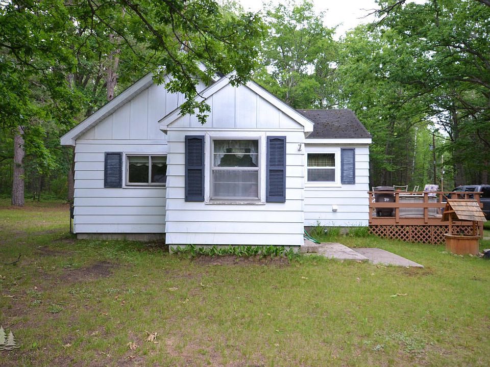 This ''up north'' cabin features 2 bedroom, 1 bathroom, 2 nicely wooded lots and more! Closely situated within walking distance to the Twin lakes or town. Close to snowmobile trails. This is the perfect getaway cabin!