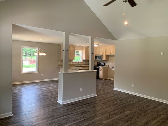 The Narrow Plan. Open floor plan in the great room, dining room and kitchen. Great room offers a vaulted ceiling. The kitchen has a breakfast bar, granite, built in microwave, dishwasher and glass top stove. Kitchen offers the back door that leads to the large covered back porch. The home has three bedrooms and two full baths. The master bedroom has a private door leading to the large covered back porch for a private retreat, a tray ceiling, a large walkin closet, a private master bath with dual sinks in a granite vanity and a 42 inch garden tub/shower. The home offers approximately 1650 living area, fishing, a two car garage and a front and back porch. The owner is a Realtor, broker and principal member of Gainey Construction, LLC.
