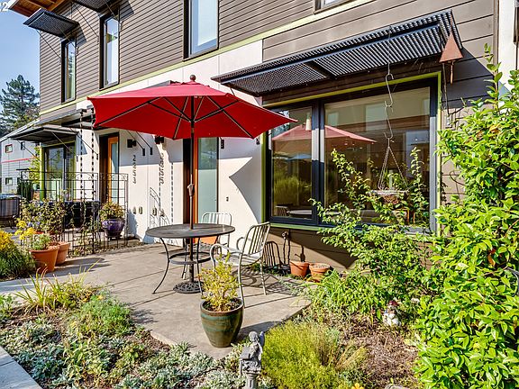 Exceptional in every way, this energy-efficient, Jan Fillinger of Studio-e designed townhome provides contemporary lifestyle & convenience. 3 bedrooms 3 baths, detached garage, kitchen, w/ induction, freshly built in 2016 with incredible living space and high ceilings. Upper level is loft style w/ mid-century modern feel. Modern design character and personality. Common areas outside your front door look out on raised garden beds and patio area. Wonderful shopping, parks and bus line nearby.
