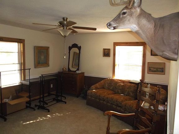 Surrounded by over 40 acres of beautiful land and mountain views, this is a true country farm home with 4 BR's, 2 BA's. Kitchen has stainless appliances, Formica counters, 3 stool-bar. The dining area has built-in cabinets and a large window seat. Master Bed/Bath on main floor. 3 BR's on second level w/bath. Outdoors has many features for keepers of horses and other animals. Front Barn=6 stalls & paddocks, Tack Room, Apt. Rear Barn=4 Stalls w/paddocks, hay loft, walk-out. Large fenced Riding Ring. 3-Stall walkout-shed by Creek. Other outdoor recreation includes an above-ground Pool. 2 Car Garage/Shed. 1 Car Garage.