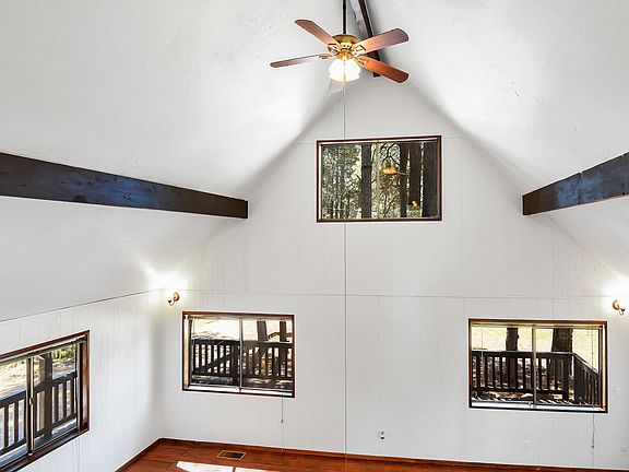 Chalet Charmer! Here is your chance to get your cabin in the pines. Move in ready 3 bedroom and 1 3/4 bath with vaulted ceilings, walk-in closet in master, large deck with covered patio, large fenced heavily treed flat lot with this great buy. Remodeled in 2013 with new roof, new furnace, new countertops, new floor and much more!