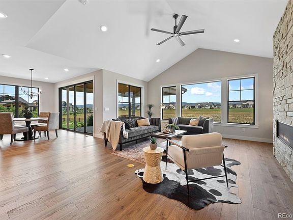 VIEWS! Sunny and Bright, captivating views from the minute you open the door. Custom home with all the bells and whistles. Vaulted ceilings, stone surround on gas fireplace, hardwood floors, quartz countertops, custom cabinetry, custom lighting, built-ins in laundry, and walk-in pantry just to name a few of the many features. Fantastic Ranch floor plan with split bedrooms for privacy. Primary bedroom feels like a retreat with a view of Longs Peak, 5 piece bath boasts a spacious walk-in shower and soaking tub. Amazing extensive covered patio with additional area for possible gazebo or outdoor fireplace. Enjoy custom landscaping with lighting and water feature. On the 11th fairway of the acclaimed TPC Golf Course with the cart path on the other side which makes this home very private and no golf balls in the yard. This home is absolutely move-in GORGEOUS, located in a quiet, private cul-de-sac. Walk or ride your Golf cart to the Clubhouse for lunch or dinner with a 20% discount for residents. Pool and work out facility in the clubhouse are included in the Berthoud Heritage Metro District.