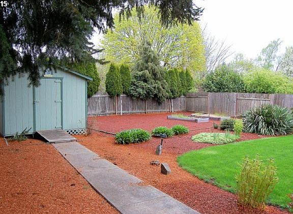This wonderful single level home has been well cared for. The nice sized living room is accented with vaulted ceilings. The kitchen features a breakfast bar and ample cabinet space. Outside the landscaped yard is truly eye catching with its raised gardens beds. The covered porch and white picket fence are attractive and inviting. Equally impressive is the large covered back patio. Two car attached garage. Tool shed.
