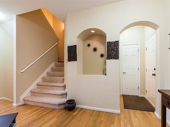 Take in the Mountain Views from this rare Summit at Rock Creek townhome! This home lives like a single family, but without the cost! Open main floor w/high ceilings, wood floors throughout, family room w/gas fp + formal dining open to kitchen w/newer ss appliances, extended cabs and counters. Large master bed w/5-piece bath + walk-in closet. 2 add'l upper beds + full bath. Fin bsmt w/open rec room that could be 4th bed + 3/4 bath + laundry. 2-car att'd garage. Radon mitigation system. Must see!