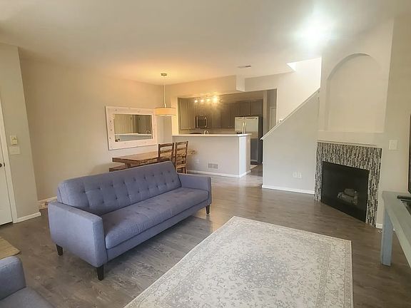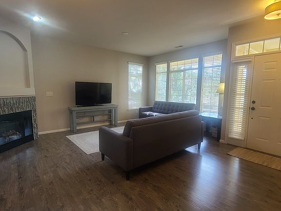 Beautifully updated end unit townhouse at the Summit at Rock Creek. One of the best locations in the complex, close to clubhouse and pool/spa, playground and steps from amazing trails, open space & shopping. Cute front porch awaits your morning coffee with tons of privacy and mature trees. Open the door to stunning luxury plank flooring on the entire main level, boasting tons of natural light the family room features open floor plan and beautifully tiled gas fireplace. Separate dining space and bar area for morning breakfast. This updated kitchen features modern cabinets, backsplash and counters, S/S appliances and range with double ovens. 1/2 bath on the main level. As you approach the stairs the natural light is inviting from vaulted ceilings and skylights. Primary bedroom features tons of natural light, vaulted ceilings, and tons of space. Attached 5 pc primary bath with updated cabinets, counters and beautiful tile. Huge walk-in closet. Additional 2 bedrooms with vaulted ceilings, and updated full bath on the upper level. Laundry room is located on the upper level for ease and comfort, washer and dryer included. No pets Tenant is responsible for Electric/Gas, internet/phone/cable. Landlord pays: Water/Sewer and Trash Services Restrictions: No Students, No Co-signers, No pets, No smoking Pets: 1 dog negotiable with $300 pet deposit