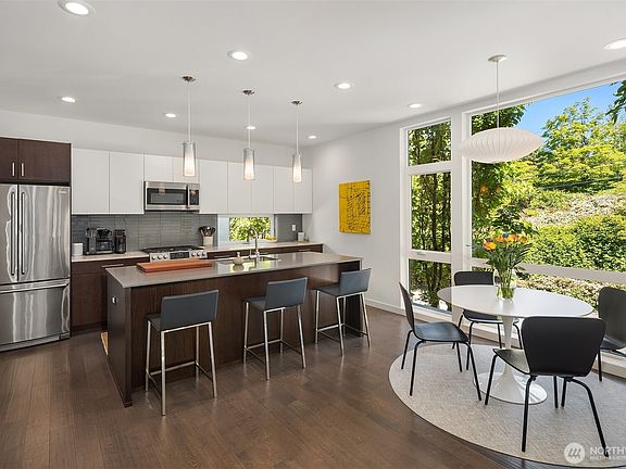 Exceptional custom home by Fine Structures, built in 2017, part of an enclave of five elegant modern residences. This standalone home is set on a quiet street overlooking parks and open space, with abundant natural light throughout. The dream kitchen features a large island, walk-in pantry, and dedicated dining area. Enjoy two covered decks—off the living room and the primary suite—plus a rooftop deck ideal for entertaining. Recent upgrades include solar shades and custom built-ins by Queen Anne Painting. Serene primary suite with walk-in closet and spa-like bath with double sinks and shower heads. One-car attached garage. Quick access to parks, shops, dining, and the new Judkins Park light rail station in 2026. Begin your next story here.