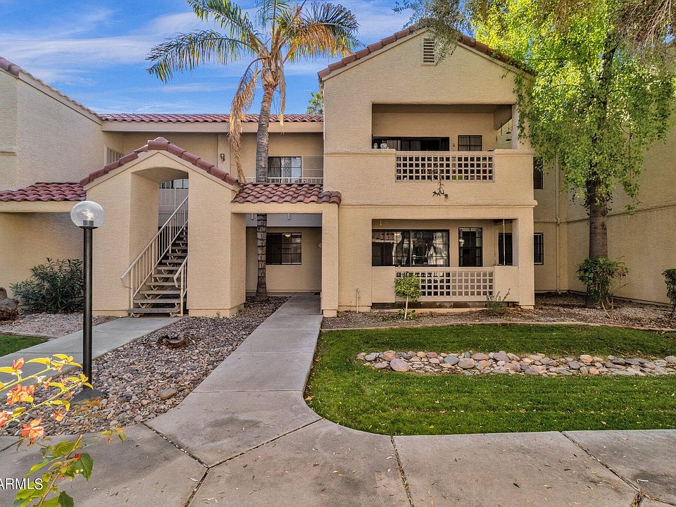 Ground Floor Unit! Come into this spacious 1,120 SF ground floor condo featuring 2 beds and 2 baths in a split floor plan for optimal privacy from guests. The open-concept great room ensures a spacious feel, perfect for entertaining or unwinding. Flip on the HVAC with confidence knowing it was replaced in 2019 and enjoy the community amenities that include a pool and spa. Perfectly located with easy access to the 101 and 60 Freeways makes getting around town a breeze to enjoy all the attractions of the East Valley.