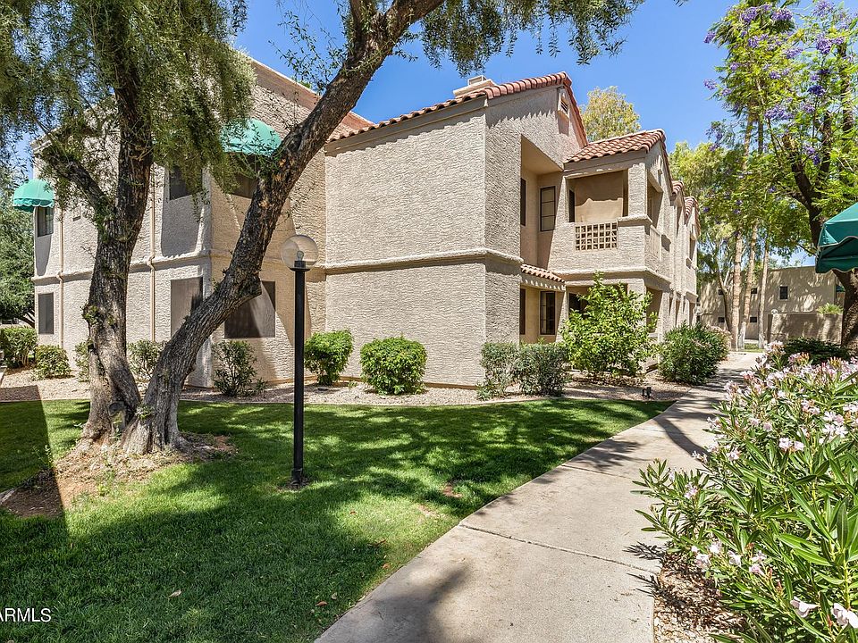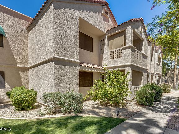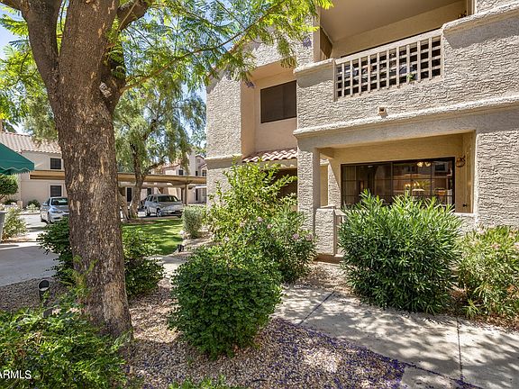 Charming 2 bed, 2 bath bottom floor unit is waiting for you to call home! FRESH PAINT inside, Open floor plan that is perfect for entertaining. Spend your evenings outside under the covered patio. Owners suite is spacious with an ensuite. Just steps away from your front door you can escape to paradise in the refreshing community pool. Take full advantage of the amenities. Located near the US 60 and the 101 for easy freeway access.