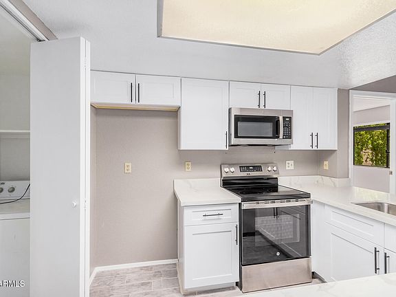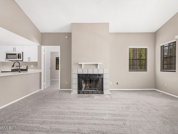 Beautifully remodeled and move-in ready, this 2-bed, 2-bath Mesa condo shines with over $30K in recent upgrades! The open-concept layout features vaulted ceilings, new carpet throughout, and a cozy fireplace. A stunning kitchen boasts quartz countertops, new cabinets, new tile flooring, and premium appliances. Both bathrooms showcase fresh vanities and tiled showers. The east-facing private balcony is perfect for relaxing, plus there's in-unit laundry for added convenience. Enjoy community amenities including a pool and jacuzzi. Ideal location with easy access to US-60 and 101, lots of grocery, shopping and dining options nearby. Comfortable living awaits—come see it today!