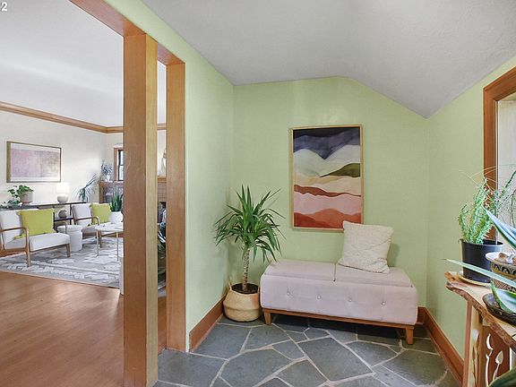 Colonial Heights corner lot stunner filled with warmth and charm, loved by one owner for many years. Functional layout with oversized bed & bath on main, plus 2 ample bedrooms, bath, & sunny office upstairs. Built-ins with leaded glass, alder millwork, original wood floors, metal roof, owned solar panels. Spacious kitchen with breakfast nook overlooks the fenced yard with mature plantings. Plenty of storage in the rare oversized 2 car garage and large finished basement. Walk/bike score of 86! [Home Energy Score = 1. HES Report at https://rpt.greenbuildingregistry.com/hes/OR10206500]