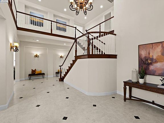 Welcome to your dream home in desirable Dublin Ranch Golf Club Community, featuring 4610 sq ft, 4 rooms plus loft plus office, 5 baths, the office can be the fifth bedroom. 3 car garage. Downstairs, find a grand foyer with volume ceilings, upgraded floors, formal living & dining rooms perfect for gatherings, and a full downstairs bathroom. The gourmet kitchen boasts cherry wood cabinets, custom light fixtures, stainless steel appliances & expansive island w/seating. The dining nook & built-in workstation enhance functionality, adjacent to the family room w/natural light, & cozy fireplace. Upstairs, primary suite includes spacious retreat, spa like bathroom w/dual sinks, vanities and impressive walk-in closet w/custom shelving. The large loft offers versatility, with 3 secondary bedrooms and three well-appointed bathrooms. Outside, enjoy a private oasis with water fountain and mature landscaping. All this and more conveniently located near top rated schools, shopping, parks & restaurants. Enjoy the community pool and tennis courts. Don't miss this beauty!