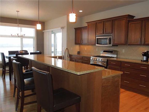 Gorgeous, open layout with split bedrooms, 6 bedrooms total, 3 of which have walk in closets & 4 full baths. The kitchen overlooks the great room & includes stainless high end appliances, convection oven, granite counters, cherry finish cabinets with crown molding, dove tail drawers with soft close, maple flooring & tile backsplash. There are 12' ceilings on the main floor & 9' in the lower level, sound & security systems, central vac, solid core doors throughout with neutral colors & a must have drop zone with lockers. Maintenance free deck off the kitchen with stairs to a patio & stone wall for privacy, also an iron fence for the property. The master suite includes a spacious walk in ceramic shower with a full glass door & granite bench. This home is drenched in daylight with large windows throughout, including the finished walk out lower level. This Wildflower subdivision offers a community stocked pond & playground.