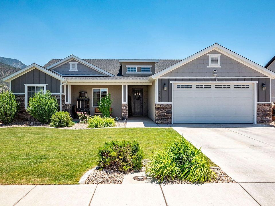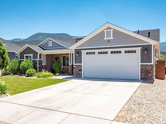 Buyers are walking into over $70k savings considering the newly installed solar system, fully finished landscaping with many new trees, shrubs, plenty of grass for the kiddos, & a full block for privacy. This newly built 4 bed / 2 bath gem is nestled into a serene-family-friendly neighborhood. The home has an open concept living area that seamlessly connects the living room, dining space, and kitchen. Seller has preferred lender that will offer preferred rate (as low as 5.5%) to qualified buyers. Current balance on Solar is approximately $20,000. Seller plans on paying this off at closing. Buyer has the option to assume this balance, with payment of $92/month, & the seller will accept an equal amount less on purchase price. The living room features large windows that flood the space with natural light and breathtaking views of Shurtz Canyon. The kitchen is equipped with new appliances, plenty of counter space, and a corner pantry for storage. The mudroom and laundry room offer plenty of additional storage and hanging space. The master bedroom has double vanities, soaker tub, and an oversized separate walk-in shower. The three additional bedrooms have built out closets and provide plenty of space for family, guests, or a home office.