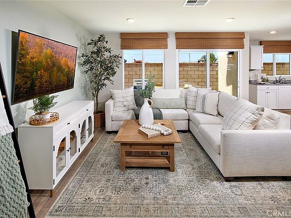 NEW CONSTRUCTION in Winchester - SOLAR INCLUDED!! - This 1,874-sf home with a California Bungalow façade has 5 bedrooms and 3 bathrooms - INCLUDES - WASHER/DRYER, REFRIGERATOR, WINDOW TREATMENTS and BACK YARD LANDSCAPING! The Island kitchen with island eating area has Valle Nevado granite counters, built-in stainless-steel appliances and a walk-in pantry. The interior comes complete with White shaker-style cabinetry throughout, lots of included recessed lighting, Rustic Taupe vinyl flooring on first level and plush carpet in all bedrooms, stairs, and closets! There is a DOWNSTAIRS BEDROOM AND FULL BATHROOM and upstairs the main bedroom with ensuite bathroom and walk-in closet, 3 additional bedrooms and full bathroom, and a laundry room. There is also a direct-access two car garage PRE-PLUMBED for an electric car! This truly modern home has all the SmartHome features you would expect and, is LANDSCAPED AND IRRIGATED in the front and back yards. The Pradera Place community is situated close to park and freeway access. We anticipate the End of December 2024 move in