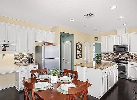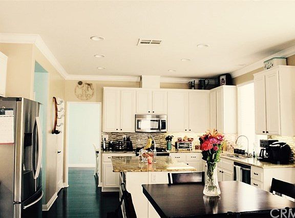 WELCOME HOME! Highly upgraded Menifee home with LOW TAXES and NO HOA! Open your front door and find an open floor plan with Vaulted Ceilings, Crown molding through out the home, gorgeous engineered hardwood floors lead you to the Gourmet Kitchen. This highly upgraded kitchen offers all new granite counter tops, cabinetry, large island with plenty of storage and area to entertain family and friends. Family room is open and inviting to both the Chef and your family and friends. Upstairs you will find 4 large bedrooms. Master bedroom is extremely spacious with large walk in closet and master bath. The backyard won't disappoint. Large patio area that includes a canopy, and numerous fruit trees. 1 minute to the 215 freeway, unlimited shopping, doctors, an hospitals close by. Garage floors have been custom finished with apoxy color floor coating.