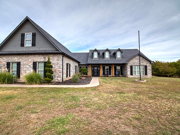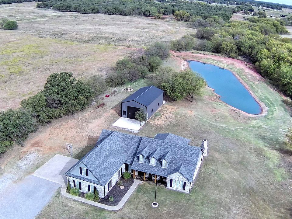 This spacious 3-bedroom, 2-bathroom home sits on 32.06 acres. Surrounded by nature, this property offers a perfect blend of open space and privacy. This property features a beautiful home with two shops, two ponds and a creek conveniently located 1 mile from the Comanche Golf Course and Comanche Lake. The main shop is a 40x60 with an 80' roof length. It includes 4 overhead doors, RV Hook-up, Insulated, All Electric, multiple 220-amp plugs, and a wood burning stove. The second shop is 25x55, brand new with 2 overhead doors. Enjoy your view of the beautiful, stocked pond located outside your back patio door. This pond is stocked with Bass and Blue Gill. Have a relaxing day fishing in your own backyard or relaxing on the covered outdoor patio. It is perfect for entertaining. This property also includes another beautiful, maintained pond and creek that both hold water. This home offers an open-concept layout. that connects the living, dining and kitchen areas creating an inviting atmosphere for gatherings and family time. The kitchen offers a lot of storage with a large island, granite countertops and beautiful view of the pond from the kitchen window. The mother-in-law plan offers 3 bedrooms, 2 bathrooms and an office. Primary bedroom features a nice, attached master bathroom with double sinks, granite countertops, garden tub, custom tiled shower and large walk-in closet. Upstairs there is a 535 Sq. Ft unfinished BONUS room! This room would be perfect for an extra bedroom, game room or storage. The 3-car garage also includes a climate-controlled room perfect for a gun safe. This home has all you need for a comfortable living! For more information or to schedule a showing please contact Jennifer Wolston, Realtor with LAND PROS REAL ESTATE, LLC at 580-467-4399.