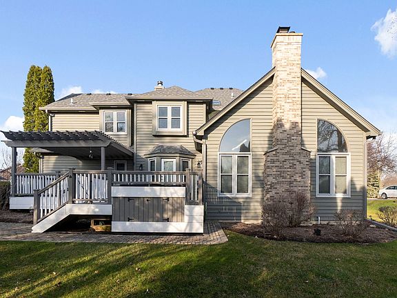 Welcome to your Dream Home! This elegant and spacious 4-bedroom, 2.1-bath house boasts a 3-car garage and a scenic view in the Oakhurst subdivision. The master bedroom is a true retreat, with a massive bedroom, a cozy sitting room, fireplace, walk-in closet, and a master bath for your relaxation. This is a True Master Suite. Step inside, and you'll be greeted by a grand foyer adorned with beautiful woodwork and built-in shelves and closets. The separate dining room is perfect for special family dinners. The kitchen is a delight, with a cozy eating area and an open flow into the huge, sunlit family room with lots of windows for natural light that features a magnificent Stone fireplace, ideal for gatherings and holidays. But the real treat is the attached TREX patio with pergola and a fantastic jacuzzi, always hot and ready for your enjoyment. 3 Car side load garage, sprinkler system The full unfinished basement offers endless possibilities, and you're just 4 min drive away from the Fox Valley Mall. Your dream home is waiting.