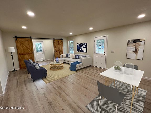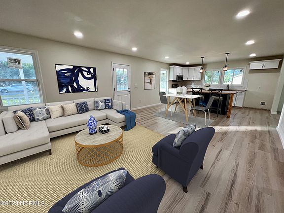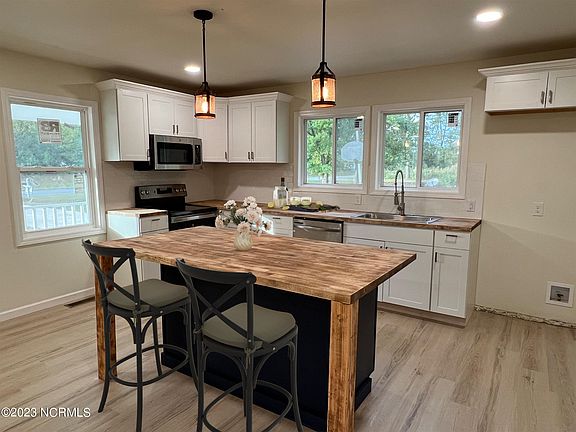 This exquisitely restored farmhouse is a true gem, completely updated and move-in ready. Indulge in your leisurely afternoons on the spacious porch, which practically calls out for a charming swing. The interior boasts a modern, open design that seamlessly blends with the farmhouse's original character. The kitchen is adorned with elegant butcher block countertops and a center island, complemented by stainless steel appliances.