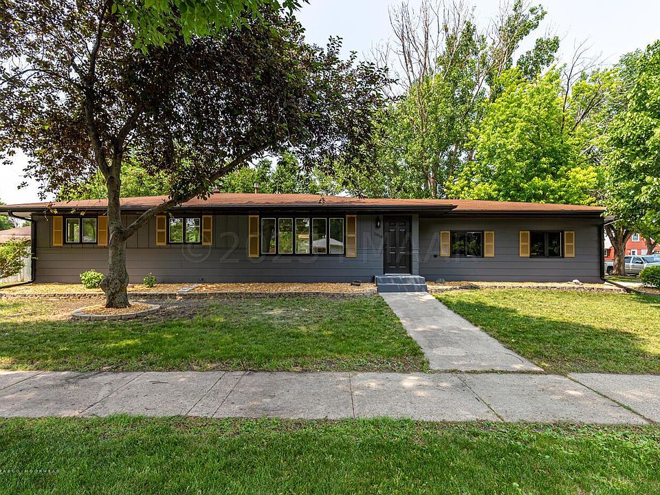 This spacious ramber on North Fargo's Elm Street features three bedrooms on the main level with fourth bedroom in lower level! The Master bedroom features private bath with custom tile shower and large closet! Additional interior upgrades include Newer Sainless Steel Appliances,fireplace in living room plus fireplace in basement family room! Oversized Double attached garage with plenty of parking. Check out this lower level bathroom with custom tile shower! Basement also includes Large bedroom with walk in closet, new carpet and paint! Must See! Don't miss this one! Home has Central Heating and Central AC. Fenced backyard, Nice deck on back of home for entertaining!New shingles were installed on 9/25/23