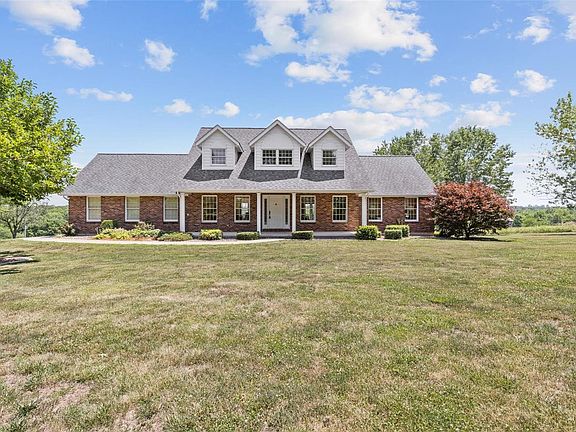 This picturesque property in storybook Labadie, nestled on just over 7 acres with stunning views & tranquility like no other. Gently rolling lawn lays out like a dream & features a stocked pond & detached 3 car garage w/attic! Newer 1.5 story w/3 spacious bedrooms, 2.5 baths & an attached 2 car garage. Traditional layout w/large entry foyer, flanked by the living & dining rooms & convenient half bath. Sunlit kitchen w/octagonal dining nook surrounded by windows nicely flows into the family room that has access to the back deck. Spacious main floor owners ensuite w/a walk-in closet & huge bath w/soaker tub overlooking the gorgeous yard. Laundry/mud room off of the garage works well. The upper level has 2 spacious bedrooms w/built-in nooks & jack-n-jill bath w/separate sink areas. Full, walk-out lower level is ready to be finished for additional living area. Well-built home w/geothermal systems & incredible access to nearby highway 44 making commuting a breeze. Washington Schools!