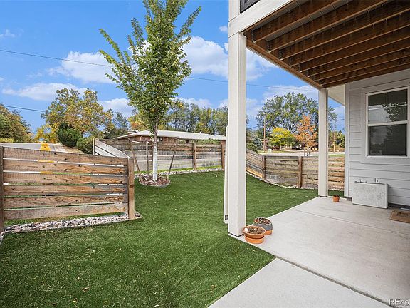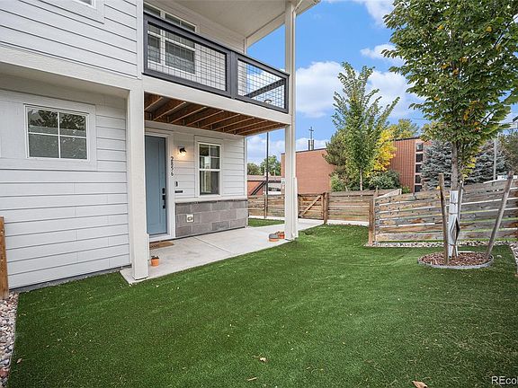 500 off first months rent with signed lease on or before 01/15/2025 BE SURE TO CHECK OUT THE WALK THROUGH TOUR. Beautiful 3 bed/3 bath Townhome with 2 car attached garage and Roof Top Deck for rent in Edgewater, Colorado. Walking distance to anything and everything - shopping, entertainment, Sloans Lake recreation and more! This home was built in late December of 2022. Everything is brand new! Each floor features outdoor living space; On the main Level is a covered front porch and private fenced yard (the biggest in the community) with Astro Turf for easy maintenance & cleaning. On the second level is a covered balcony directly off the kitchen - great for grilling. And best of all - a ROOF TOP DECK with 360 degree views of the mountains and Downtown Denver. The kitchen is a chef/entertainers dream with a huge island, smart appliances, pantry, stunning cabinetry, granite countertops with direct balcony access for grilling. Available immediately. Doggy friendly unit & community. Check out the dog friendly park in the center of the community - just a block away. (75" Wall Mounted Smart TV in living room & Window Coverings throughout are included in the lease.)