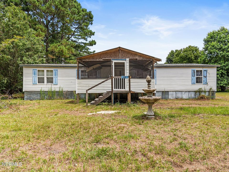 Priced to sell!! This one will be a gem once painted and updated. Imagine the front with landscaping and a coat of paint?? No HOA and is just 10 mins to Holden Beach. This is a 3 bedroom 2 bath manufactured home that has 1620 sqft of living space. Open floor plan and a den as well. Roof was replaced in 2022, but you'll want to cosmetically update the home including the kitchen and bathrooms. Being sold furnished. Comps are at $250k in the area. What a good deal!!