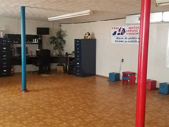 2100 +/- sq ft building with a bedroom 1 bath studio apartment. Can be used as commercial or residential. The large open area has recently been used as a dog training facility, wash room, office, and dog kennel area. There is also a side garage with a gravel floor.Property sits on 1.5+/- acre lot with road frontage, within a short drive to Rough River lake.