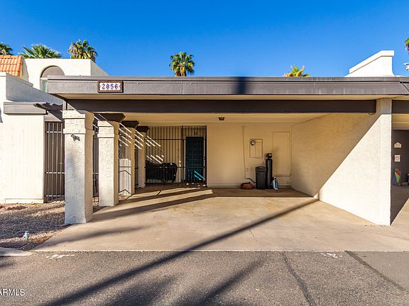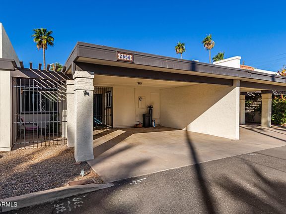 Charming 2 bedroom single level townhouse in a great gated community. As you enter, the vaulted beamed ceilings give a feeling of spaciousness. Easy care tile flooring can be found throughout. The great room is the perfect place to relax & the kitchen is light & bright. The 2 bedrooms are split for privacy, each with it's own bath. There is also an inside laundry. Double french doors & a glass slider lead to the fenced back yard where artificial turf was added last year. The carport accommodates 2 cars. The community features a sparkling pool, RV Parking on a first come first serve basis through the HOA , & ample guest parking. Located in the fabulous lower Arcadia area with easy access to freeways, shopping & dining venues & many outdoor activities.