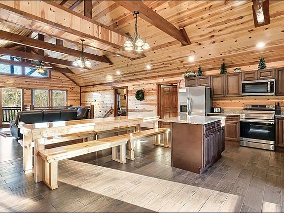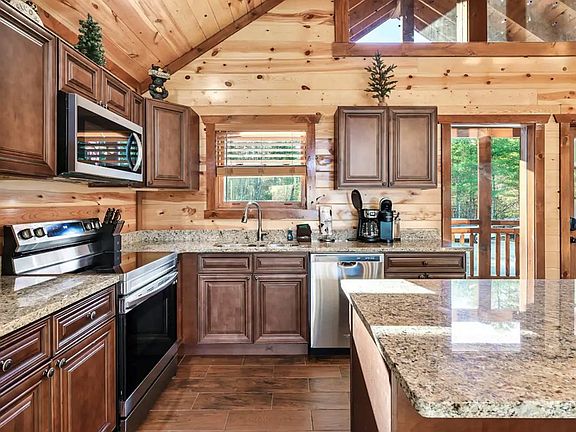 Rental history for 2023 was $310,000. Welcome to the ultimate pool cabin, featuring an incredible rooftop entertainment gazebo over the detached enclosed pool! Already established on a self-managed rental program, this monster is ready to rock with a solid rental history. This log style cabin is nestled in a prime location and features 8 large bedrooms that each have their own private bathroom, no steep roads to navigate, plenty of parking, several entertainment systems, and a fully stocked kitchen. Inside you will be greeted by spacious living areas with large windows that flood the space with natural light. Outside you will find large decks great for entertaining or relaxing and taking in the fresh mountain air. Cabin is equipped with 13D Sprinkler System.
