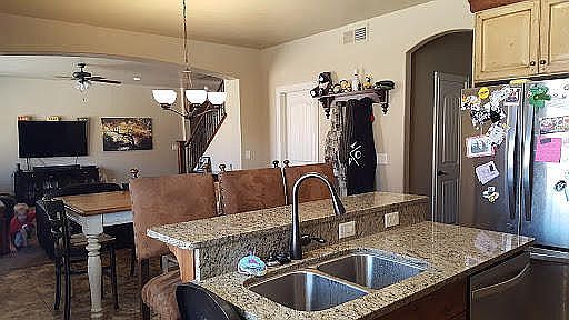 Nicely upgraded home that backs up to beautiful Red Rocks. Spectacular Views!! Functional floor plan with 5 bedrooms, den and 2 family rooms. Upgrades include tile floors, custom cabinetry, granite and more. Must see!