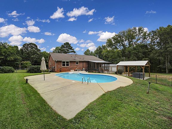 Welcome to this Rock Hill SC property that truly has everything. Large dining and kitchen with granite countertops and backsplash. Spacious living room area. 3 bedrooms, 2 full baths one with walk in shower and the other with a tub/shower. Basement with rock fireplace in large room, room/office, large storage room, half bath and laundry room. Outside featuring a 28x40 Workshop with heat pump, office area, 5HP air compressor, 7000lbs 2 post car lift, work bench, laundry sink and storage above office. The second 20X20 shop has window ac, workbench, attic for storage with additional 15X27 storage on side and 7X10 storage on rear. The outdoor area is great for entertaining with 15X30 kidney shaped saltwater pool with new LED lights, app control and timers. Water and power is available for future pool house. The Eco spa seats 4 people and has lights, fan and a gazebo. Water and electric at the chicken coop on back of property. Measurements are approximate and can be verified by buyer.