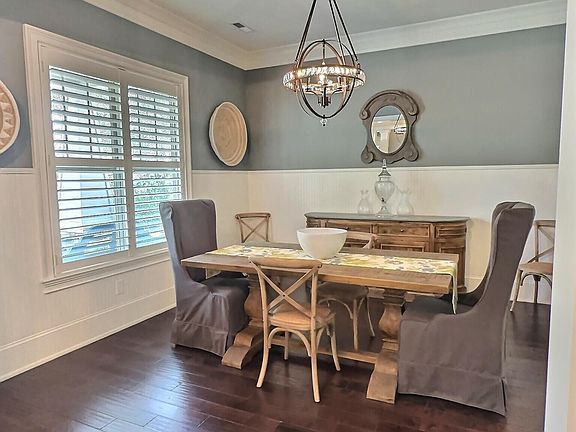 - Features: 10’ + Ceiling, Window Cov, Wood Floor, Wainscoting