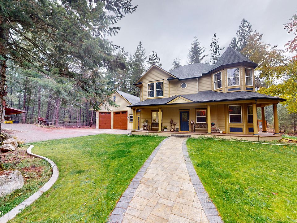 As you enter the tree line property you will enjoy 10 parklike acres with mature trees, a lovely mix of lawn & back pasture area making it a wonderful property for horses or animals. The barn is a real show stopper with beautiful detailed doors & front porch made with steel & wood, cement flooring, stairs to loft area, two stalls and tons of room for storage. Overhead lighting, side-man door, and two lean-tos on each side. The main level of the home features a recently updated kitchen with a separate dining room that opens up to a cozy living room, bedroom and bathroom that are full of farmhouse charm. Upstairs are two bedrooms, a bathroom with a large tub and a laundry room. Property is perfect for a hobby farm, just bring your chickens, bees and goats! A wonderful opportunity only 25 minutes from Coeur d Alene. Home has Timber Exemption. Motivated seller
