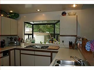 Bright and sunny is this four bedroom, three and a half bathroom home with plenty of windows and soaring ceilings all to capture the natural light. So much to offer with new stucco siding, roof and windows. Beautiful master suite complete with fireplace, vaulted ceilings, terrace, limestone bathroom and a nice walk-in closet. There is a family room off the kitchen, a sunroom currently used as the dining room and indoor laundry. Sit out on the large deck to enjoy the mature oaks that adorn the lush back garden. All of this and more on a large private lot next to a greenbelt.