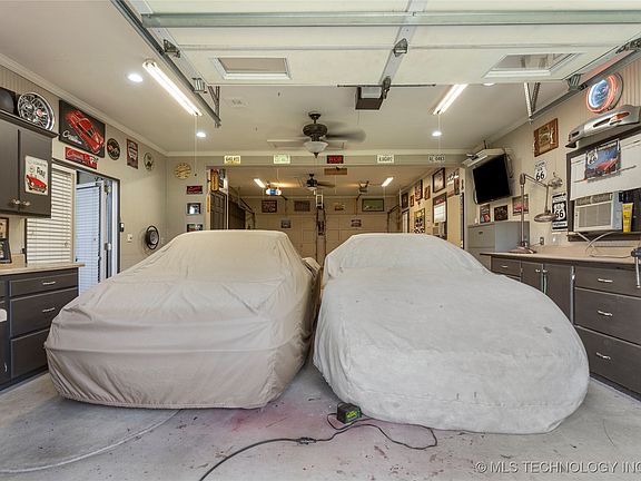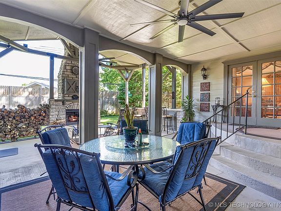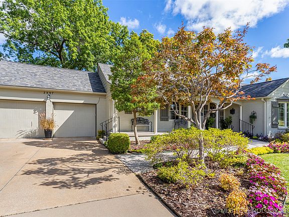 You don't want to miss this phenomenal single story home with a 4-car garage (956 Sq Ft), incredible outdoor living, 10x16 shed, and meticulous landscaping. Impeccably maintained and updated; new hail resistant roof, brand-new HVAC (ducts moved overhead) two hot water heaters, 22KW Generac generator. This home has a fantastic layout for everyday living and entertaining with a formal living and dining room, a spacious living room with additional sitting area, eat-in kitchen, large utility room with powder bathroom, updated marble hall bathroom, spacious bedrooms and a primary bedroom with private ensuite bathroom and a spacious walk-in closet. Granite kitchen with stainless steel Kitchen Aid appliances, plenty of storage and glass front cabinetry. Hardwood floors, crown moulding and trim work throughout - amazing storage! The attached tandem four car garage boasts a workshop with custom cabinetry and a overhead door opening to the backyard. HUGE covered back patio with a wood-burning fireplace, outdoor kitchen and an expansive bar. Ideal central location near South Hills Country Club, LaFortune Park, St Francis Hospital, the Shops at Warren Place, KingsPointe Village, and provides easy access to I-44.