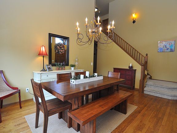 North Evergreen close to Elk Meadow, shopping and dining. Spacious lot with amazing wrap around deck, outdoor lighting and plenty of room for entertaining. Enter on hardwood flooring, vaulted living room/dining with lots of windows. You will love entertaining in the open floor plan with spacious granite island, bar seating and additional space for breakfast table, SS appliances, large pantry, opens to the family room with vaulted ceiling, gas FP, double doors open to the deck and portion of backyard fenced. Double door entry to oversized master suite, vaulted, ceiling fan, with 5 piece bath, glass surround shower, soaking tub and walk in closet. Half bath privately located with granite counter, glass bowl sink. Laundry room with sink, storage and lots of cabinets. 2 bedrooms upstairs with Jack N Jill bath, additional glass double door study with hardwood floors makes the perfect work at home office or craft room, nursery, etc. Unfinished lower level with bath plumbed for hookup. PLEASE ADHERE TO ALL COVID GUIDELINES WHILE TOURING THIS PROPERTY.