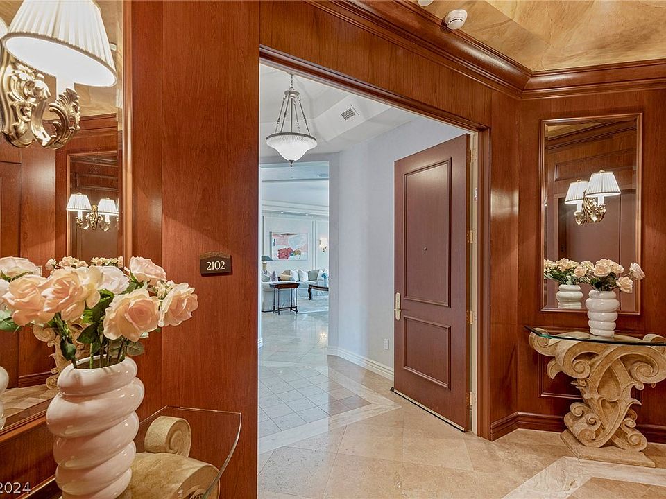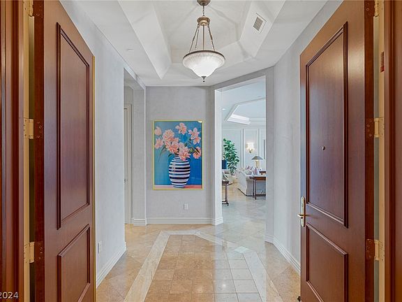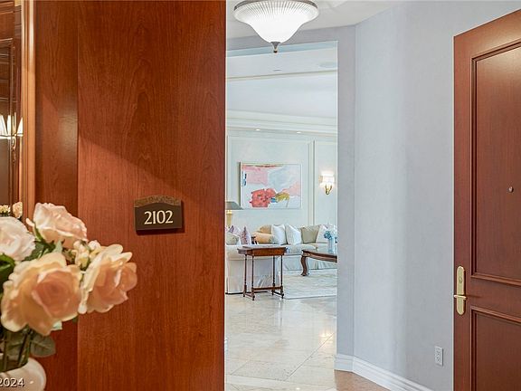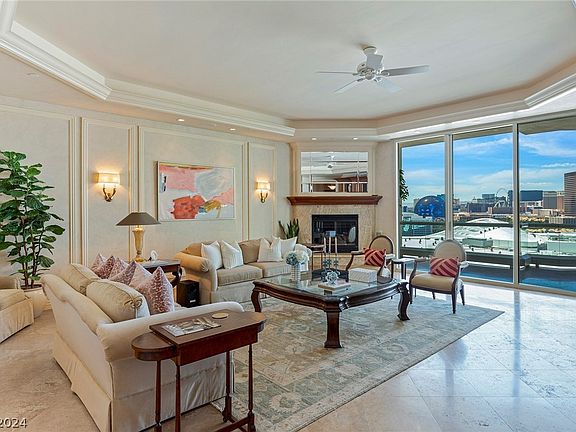 Stunning high-rise residence w/Pristine strip view.The private foyer adds an extra touch of exclusivity. Large balconies & Breathtaking views of the Strip, Downtown, 2 golf courses & Mountains. Fully furnished, Enormous living room, Well-equipped kitchen w/ European appliances Boosting a touch of Sophistication. 3 beds, 3 baths, Laundry room w/Sink & cabinets for Everyday's Convenience. 1 Storage space, 1 Car space + you may Valet extra Cars ensuring Ample Parking options. The HOA fee covers: Water, Gas, Cable, Internet, Limousine service, Valet, Concierge & Much more Adding Significant Value & Suitability.