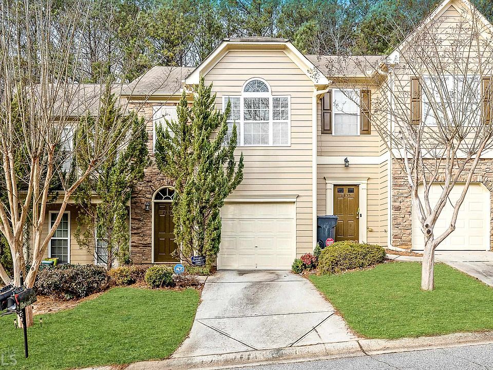 Beautiful townhome nestled in the gated, swim community of Stoney Pointe. The cozy floor plan encompasses beautiful durable flooring throughout the main level, a welcoming kitchen with granite countertops with an island overlooking the living and dining space, a fireplace in the living room and a private patio off of the back for your outside entertaining needs. Retreat to a generously sized master suite upstairs which contains a sitting room, walk in closet and an en suite bathroom with separate shower and soaking tub; two additional bedrooms and a bath are also located upstairs. This unit includes a 1-car attached garage. Located within easy access to shopping and schools and within close proximity to Hartsfield Jackson Airport, Downtown Atlanta, and an abundance of shopping and eateries at the Camp Creek Marketplace.
