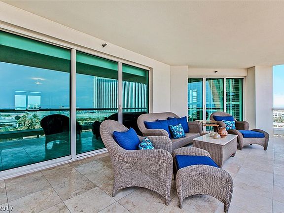 GENEROUS TERRACES WITH SWEEPING DOWNTOWN VIEWS FROM DUAL BALCONIES AT TURNBERRY PLACE TOWER TWO! TURN KEY READY UNIT W/NEWLY INSTALLED CARPET, FRESH PAINT, STAINLESS APPLIANCES INCLUDING GAGGENAU SUB ZERO & BUILT IN WINE FRIDGE, SPEAKERS, MEDALLION INLAID MOSAIC MARBLE FLOORING, BUILT IN CLOSETS, JETTED TUB & BIDET, COIFFURED CEILINGS, BUILT IN ENTERTAINMENT CENTER & SERVICE BAR, DUAL MASTERS, & GUARD GATED. EASY ACCESS TO LAS VEGAS BOULEVARD!