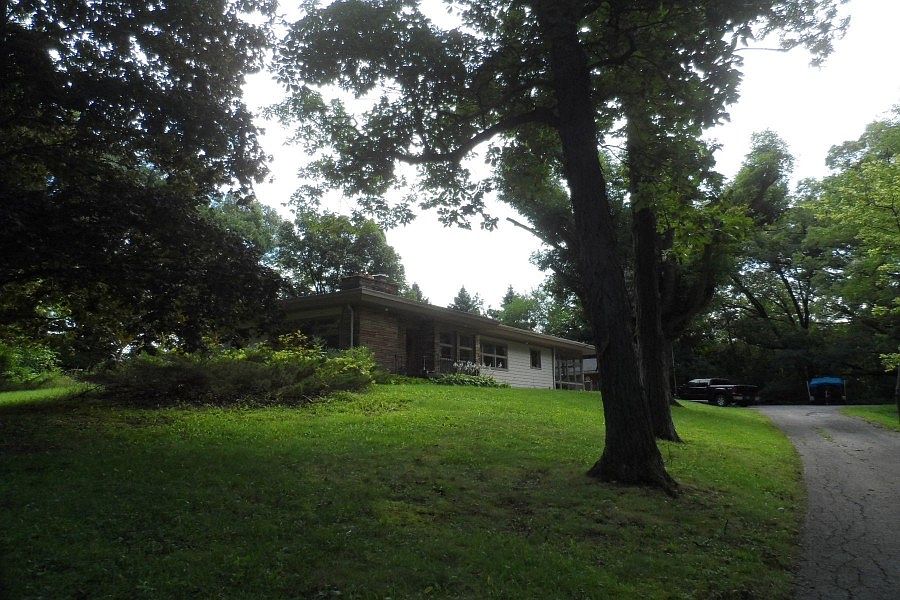 Location, Location, Location! This hillside ranch is sitting on 5 acres of private, wooded land overlooking a pond. Updated kitchen with granite counter tops, and all appliances stay with this 3 bedroom 2 bath home. Sun room, fireplace, Formal Dining Room, Hardwood floors. 2 Storage Sheds. Home needs a little TLC. Sold as is.