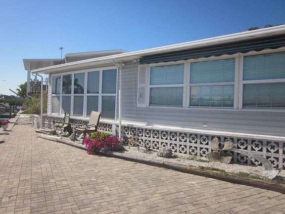 ANNUAL RENTAL Available now! 2 bedroom, 2 bath mobile that literally sits on the Water with a double lot!! Very large fully furnished property includes living/dining open concept as well as additional sitting room and florida room. Combination of wood and tile floors. Laundry on site, Garage, dishwasher, microwave, fridge, literally all the small appliances you need. Everything is here. 55+ community. Pets considered.