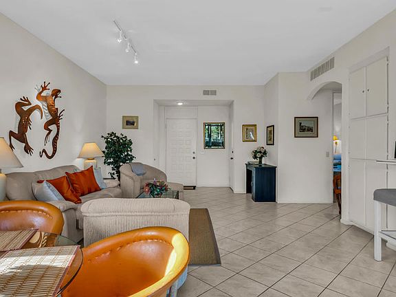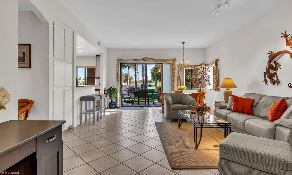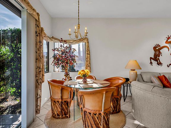 This beautifully appointed authentic 2-bedroom, 2-bathroom end unit home at Desert Princess Country Club offers an open floor plan, creating a spacious and comfortable, light flooded living environment with stunning views.The well-equipped kitchen boasts an abundance of cabinetry and sleek updated appliances. The generously sized primary suite features a private slider leading to the expansive covered patio that spans the width of the condo. Enjoy ample closet space and a luxurious ensuite bathroom complete with a walk-in shower. The second bedroom is also generously sized, with a walk-in closet and convenient access to the second bathroom. A laundry hub is handily located close by the bedrooms. Designed by renowned architect Gin Wong, known for iconic landmarks like the LAX Theme Building, CBS Television City, and the 76 Gas Station in Beverly Hills, these condos showcase exceptional design with high ceilings, a seamless flow, abundant closet space, and a front patio that doubles as a convenient golf cart corral.A one-car garage is conveniently located adjacent to the unit, while a sparkling and quiet jacuzzi & pool with lovely views is just steps from your patio. Enjoy the peace of mind that comes with a comprehensive monthly HOA fee covering a wide range of valuable amenities. Embrace the exclusive resort lifestyle at DPCC, a full-service club offering year-round access to a State-of-the-art fitness center, sports courts and spa. Scenic walking trails and clubhouse.