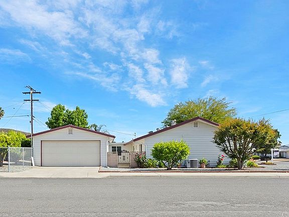 Absolutely GORGEOUS home on corner lot, tastefully updated throughout, new windows, shutters/blinds, 2 bedrooms, 1 baths, 1200 square feet with 2 car detached garage and carport in 55+ Community. Brand new wood-grain flooring throughout (sterling oak finish, high end laminate). Freshly painted inside. Light and bright with an open living floor plan on the main area. Large kitchen with all new appliances, tiled backsplash, newly painted cabinetry & counter space plus large island & space for dining area or family room. Bathroom beautifully redone with new flooring & new vanity and lovely chandelier, tiled walk-in shower. Separate laundry room inside with door to carport. Separate shed in back offers tons of storage. Large two car garage off side street, work bench and shelving, storage cabinets included. Yard has room for RV. Community offers Golf, Shuffleboard, Horseshoe pits, Fitness Center, 2 Pools, Spa, Lawn Bowling with tournaments and many activities. Move-in ready.
