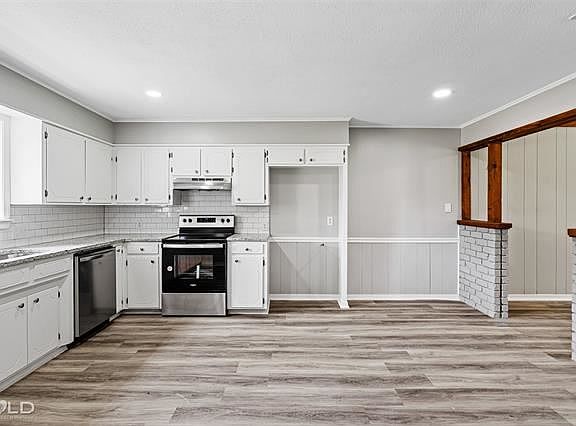 Renovated property with great curb appeal, NEW landscaping, and a large back yard! Featuring 3 Beds, 2 Full Baths, a very spacious kitchen with stainless steel appliances that flows into the living room with a wood burning fireplace, master bedroom with an en suite bath, separate utility room, unique brick accent wall between the kitchen and living area, and vaulted ceilings with exposed wood beams. The entire interior and exterior has been painted in modern colors, all new vinyl plank flooring in the main living areas with ceramic in the bathrooms and carpet in the bedrooms, new fixtures, new vanities, new granite and tile backsplash in the kitchen and bathrooms, and BRAND NEW roof! This property will not last long, as there was attention to every detail! Seller to reserve minerals