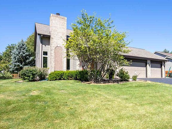 Spacious and Unique! This custom built home has a 2 story great room, huge loft area which overlooks kitchen as well as the great room and a convenient side hallway to garage (3car) laundry room & pantry, granite surround fireplace and exotic bamboo flooring. Center island kitchen w/quartz countertop, planning desk, newer appliances, transom windows & patio door to deck, pond & Gazebo. With in the last 4-6 years there is a new roof, siding, windows, A/C, Furnace, patio door & front door. The carpeting on 2nd floor and the brand new master bathroom, were done in 2019. Lower level is ready to be finished off with a full bath plumbed in. This is a must see.