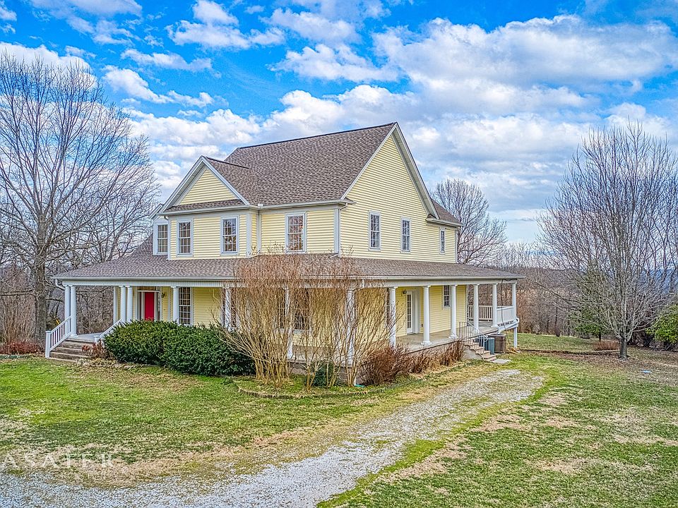 SOUTHERN ELEGANCE THROUGHOUT this spectacular 4 or 5 bedroom, 3 1/2 bath custom built home on 35 surveyed gorgeous acres. Located between Harrison, Ar and Branson, Mo in he heart of the Ozark Mountains. Approximately 4400 sq ft which begins with a spacious foyer, a living room with cathedral ceiling, gas log fireplace, lots of windows, built-ins, columns, base moulding and more. Hardwood floors, new interior paint, brand new roof, den with built-ins and formal dining room. Open floor plan with a large eat-in kitchen complete with an island, nice cabinets, pull-out shelving. Large bedrooms. Office area. Rec room in basement is plumbed for a wet bar. Huge storage area in basement. Other features include a covered wrap around porch on 3 sides, a newer therapeutic heated lap pool and new 25x40 shop building with overhead door. The land is mostly wooded with an amazing amount of deer and other wildlife. Sit on the back porch or patio and enjoy a beautiful view of the surrounding mountains. Paved road frontage, 4 miles to Harrison, yet an extremely private setting. This one has it all!