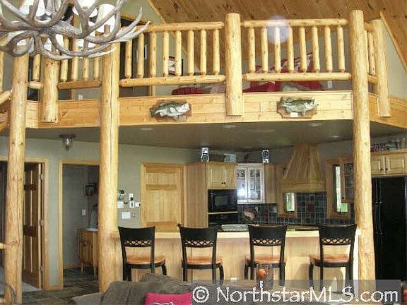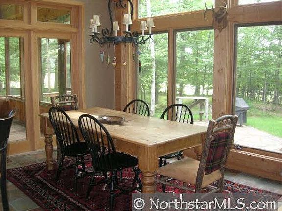 Private sanctuary w/attention to detail for function, comfort and beauty. Relaxing, warm and inviting 5BR, 3 1/2BA year around shake sided cabin w/log & fieldstone accented greatroom, lush woods, pine covered path to sandy lake frontage.